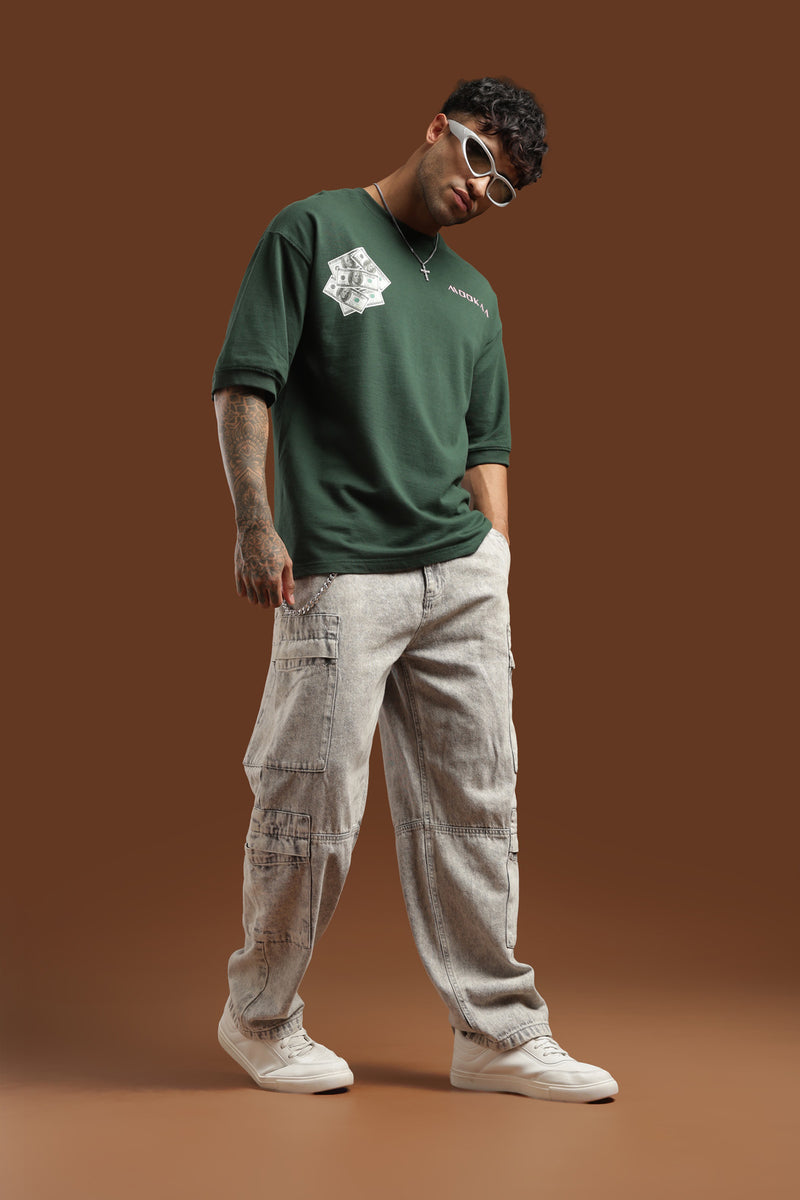 The 240 GSM Dollar Dictator oversized tee is for those chasing commas, not clout. Forest green with puff-print stacks, diamonds, and power-graph graphics bold, ruthless, and built to own the room.