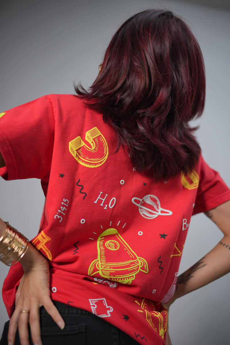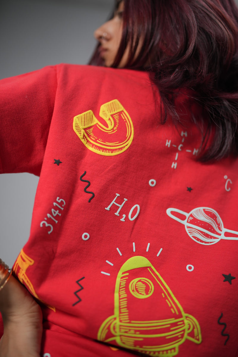 This isn’t a tee; it’s brainpower with drip. The Science Women’s Puff Print Tee comes in bold red with oversized confidence, puff prints that pop, and graphics that spark curiosity. Atom in the front, chaos lab in the back with equations, rockets, test tubes, and the whole brain blast. For girls who ask why and rewrite the rules. Smart is the new savage.