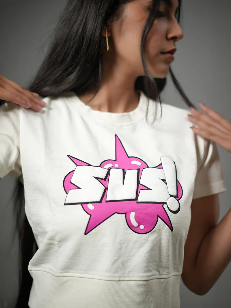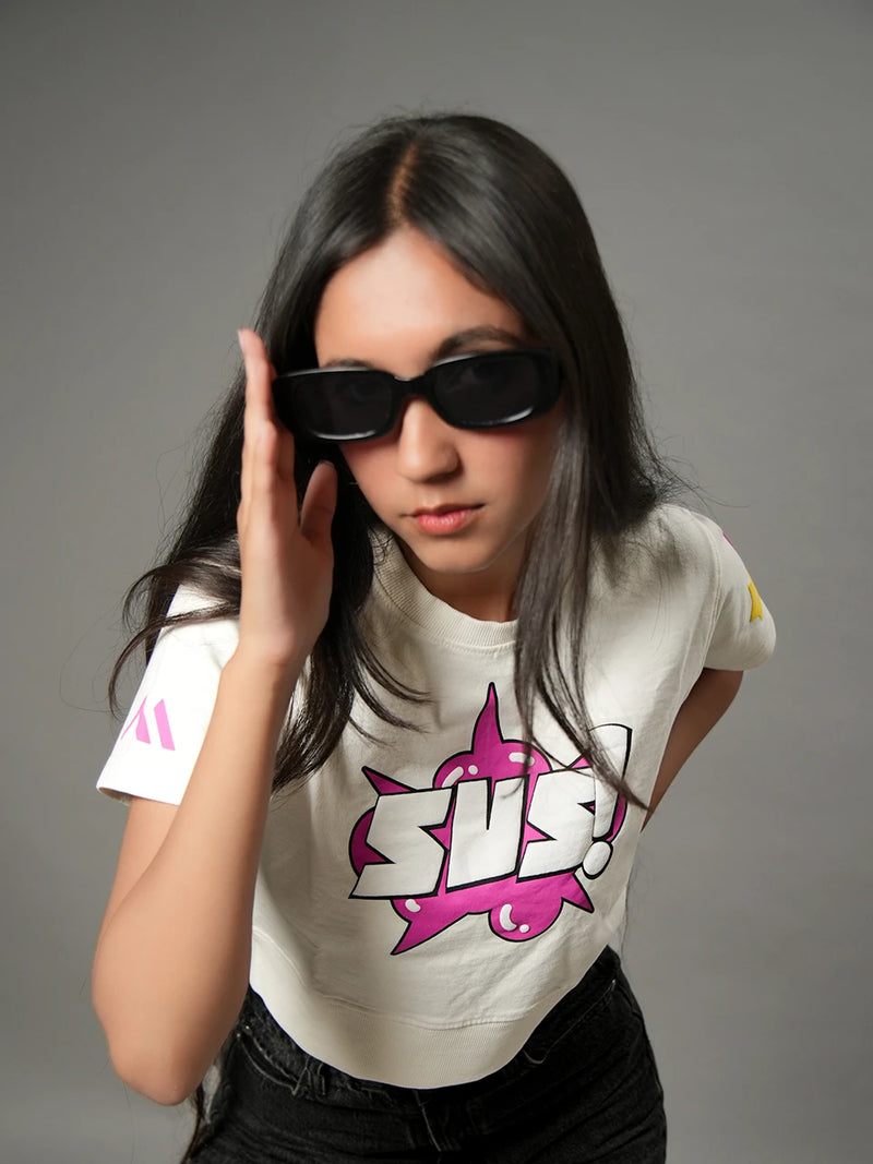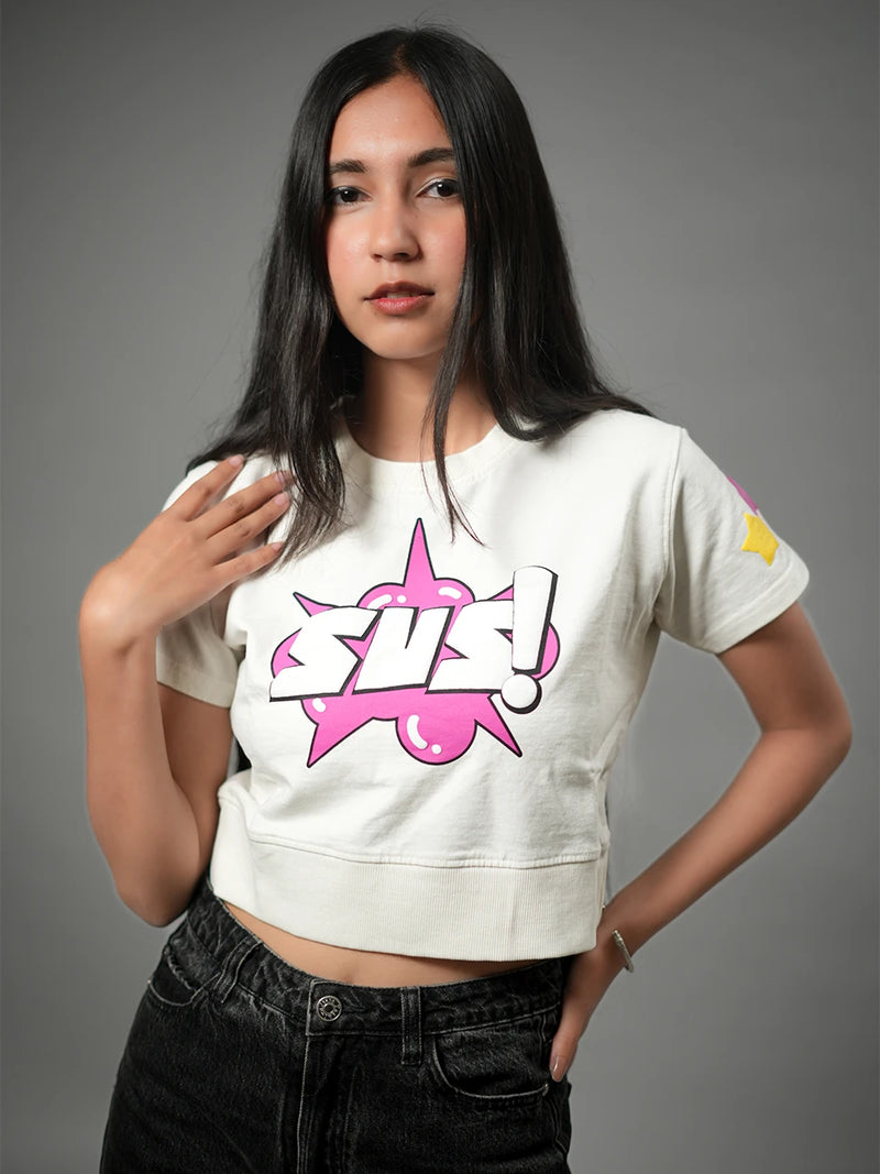 Turn heads with the Science SUS! crop top, regular-fit, cropped, and powered by Gen Z-approved puff print. Perfect for main characters, it blends irony, sass, and scroll-stopping style in soft cotton.